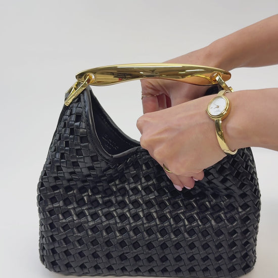 Small Boomerang Woven Leather Black