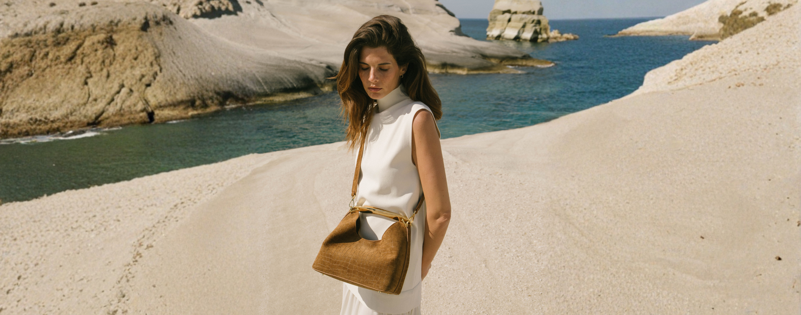 Mini Boomerang Pebbled Leather Taupe - Gold