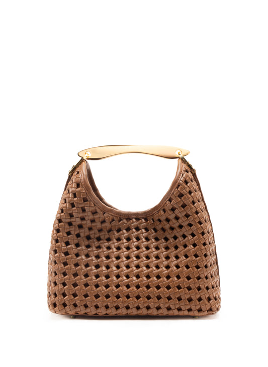 Kleiner Boomerang Gewebtes Leder Cognac