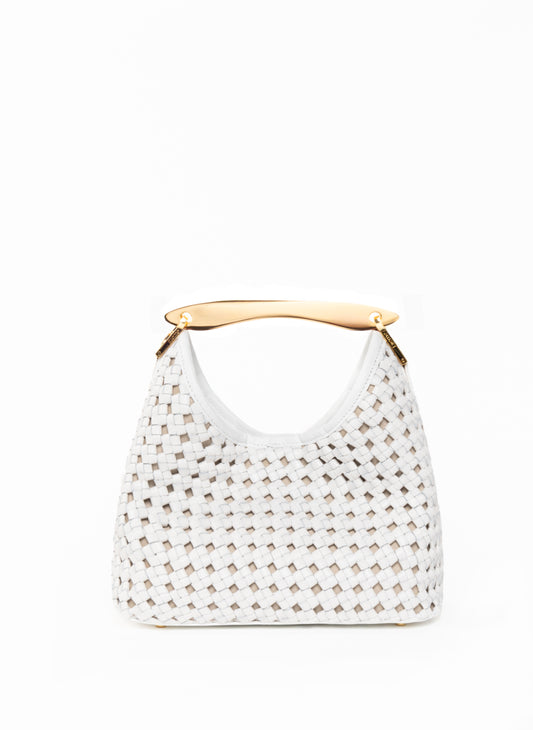 Kleiner Boomerang Gewebtes Leder Weiß
