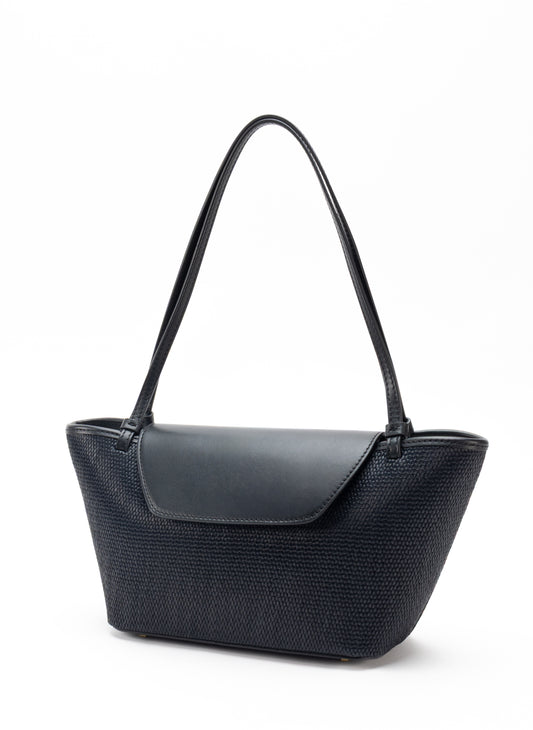 Courrier Tote Raffia/Leder Schwarz