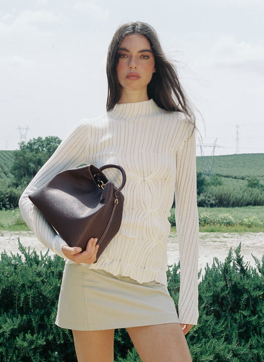 Dimple Moon Genarbtes Leder Sesam