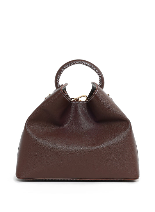 Courrier Tote Genarbtes Leder Dunkelbraun/Weiße Nähte