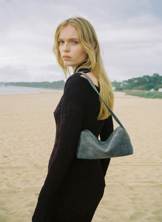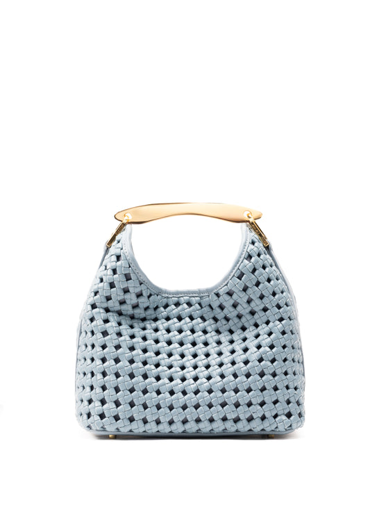 Kleiner Boomerang gewebtes Leder Arctic Blue