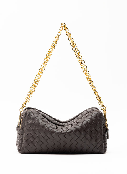 Trousse Chain Gewebtes Leder Dunkelbraun