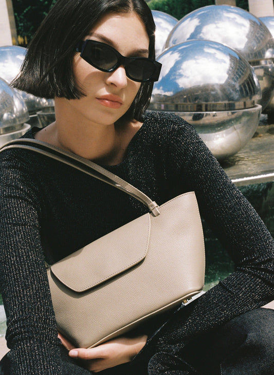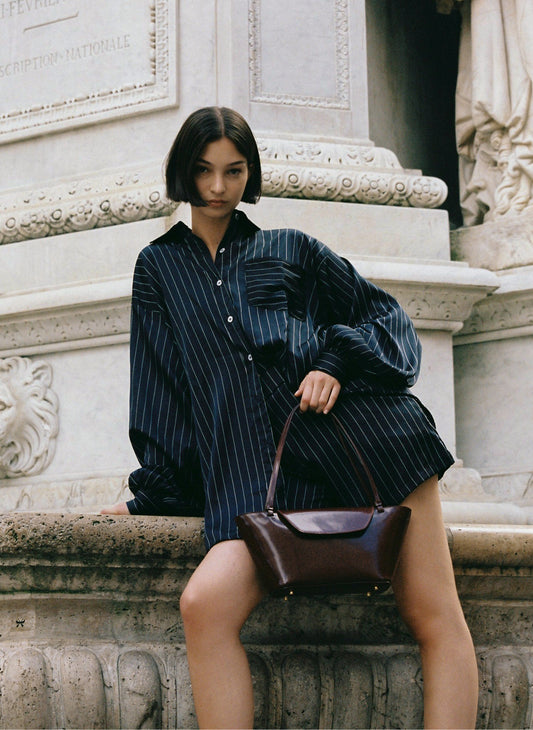 Courrier Tote Pebbled Leather Dark Brown/White Stitches