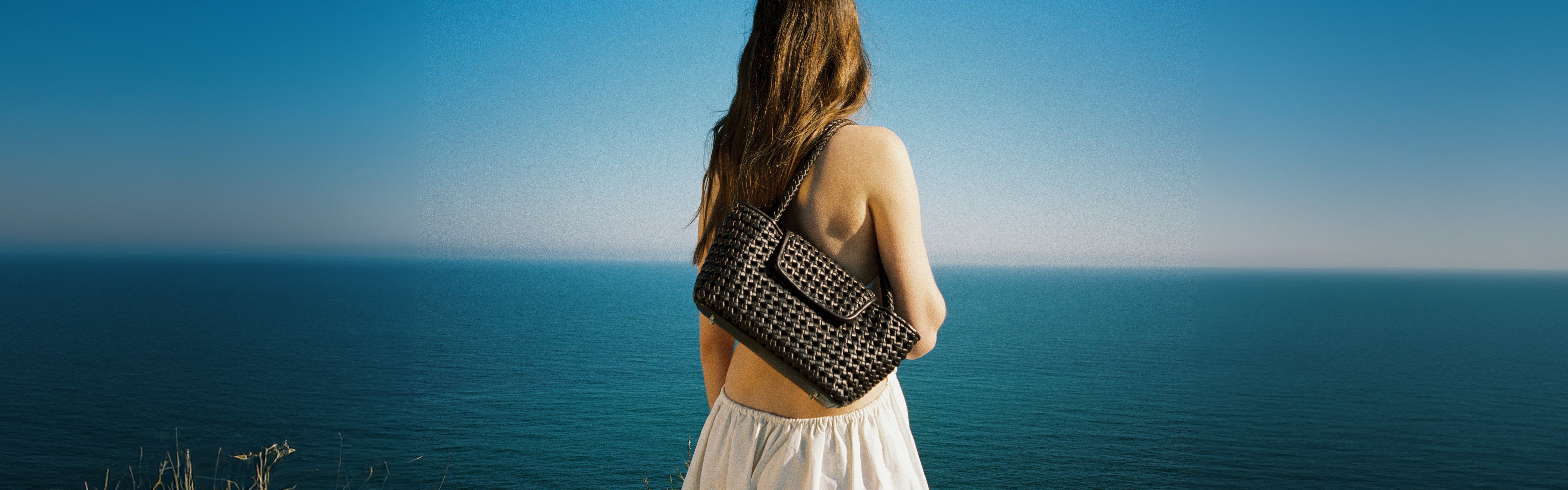 Courrier Tote Raffia/Cuir Naturel/Noir
