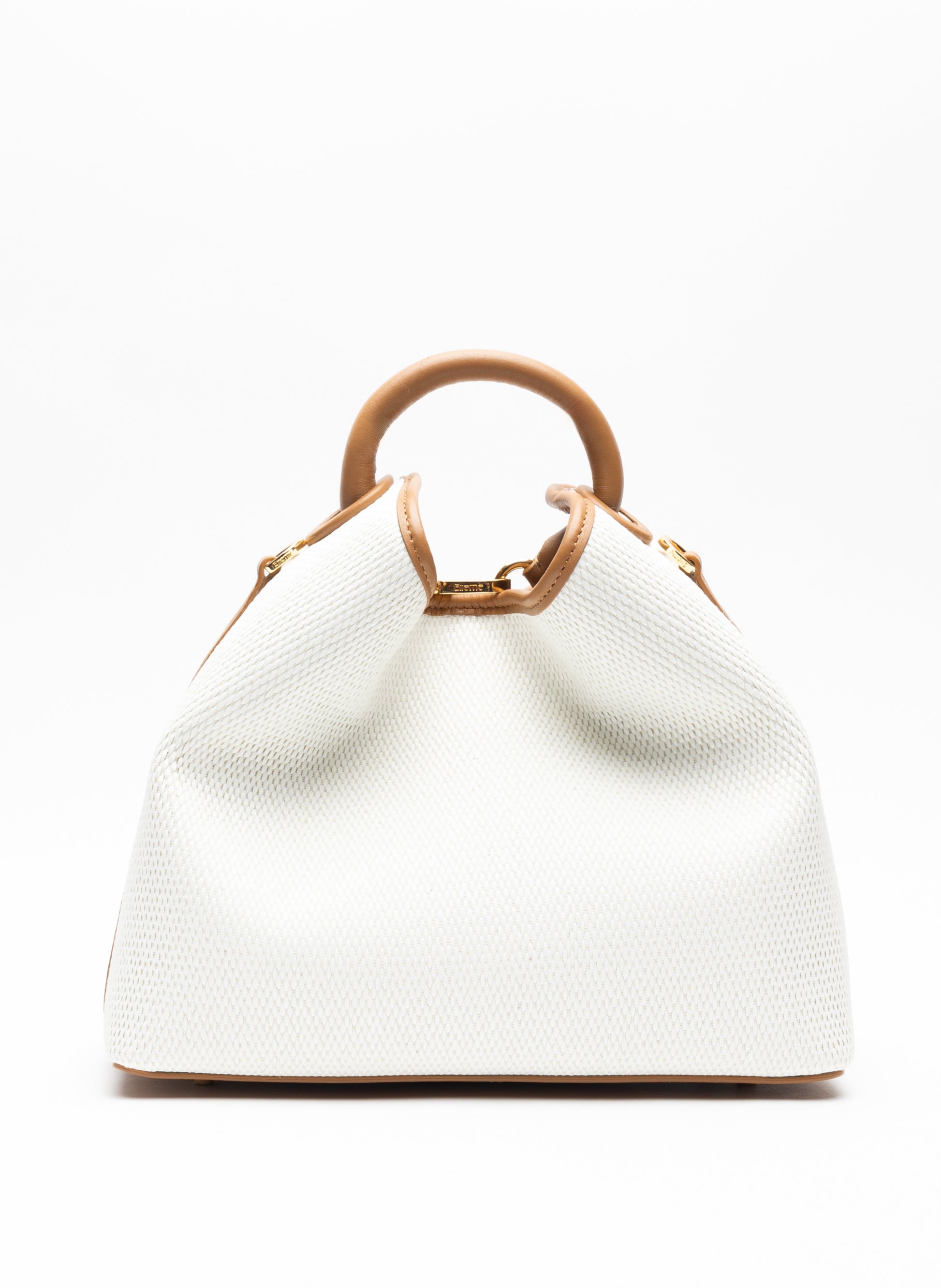 Extérieur : Corps en raphia // Poignée et sangle en cuir