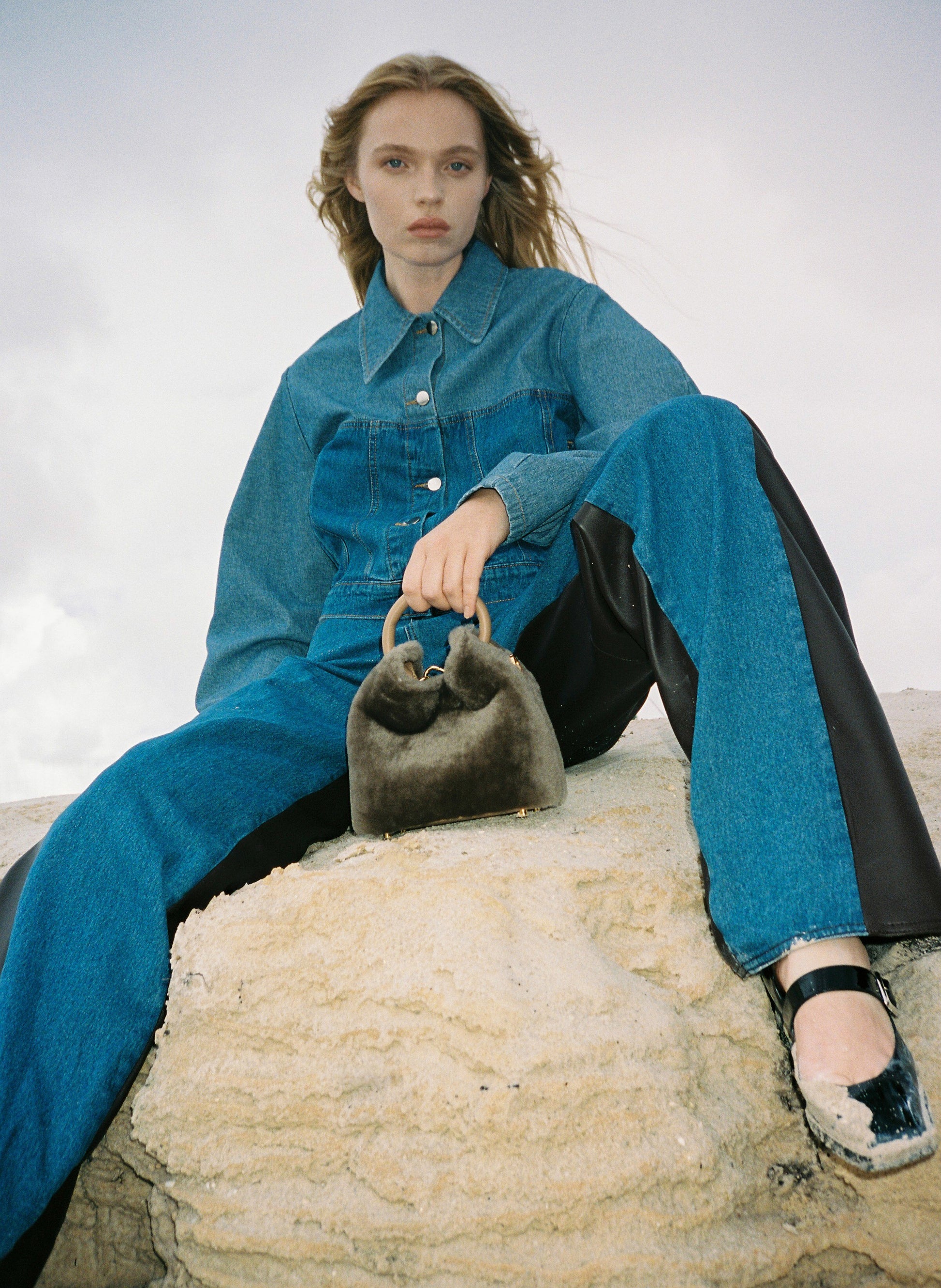 Extérieur : Corps en shearling // Poignée et sangle en cuir